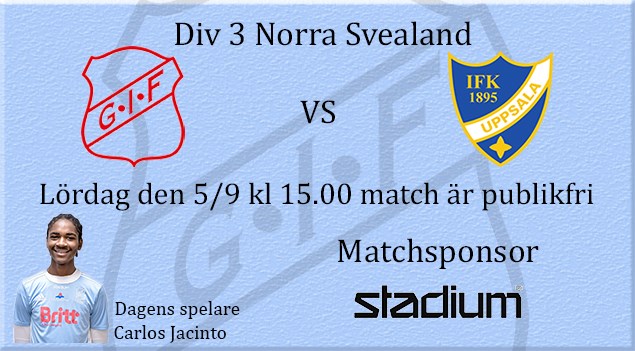 Ja då var det dags igen för en hemmamatch mot IFK Uppsala. Som kommer från en 3-1 seger mot Spånga IS FK. Ett meddelade från Erik på kansli så är det publikfritt på Önsta IP på lördag så vi ber er att respektera det. Som vanligt kan man förja matchen live via denna länk. Liverapportering Mvh Ledarna A-lag Herr 3 sep 2020 0kommentarer