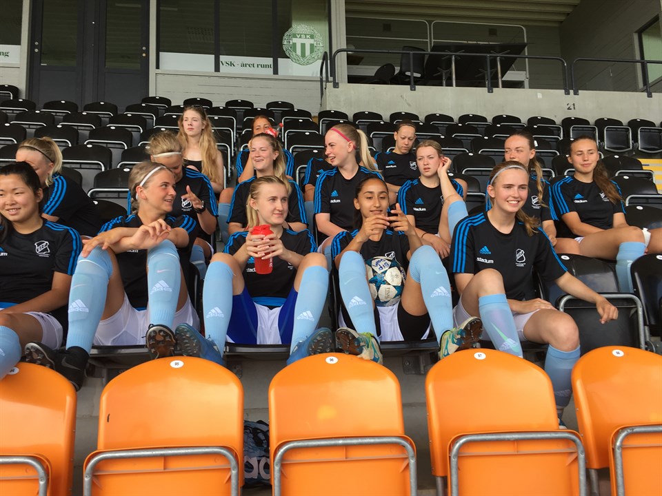 GIF - Vaksala 2 - 0 (1 - 0) Det är inte många gånger man är stolt över att vara tränare men idag känner jag och Tobbe att vi i alla fall lyckats med någonting. Det spelet som vi jobbat ganska hårt för att få till satt perfekt idag. Passningsspel ända nerifrån i backlinjen genom mittfältet, ut på kanterna och in till forward. Bra press i defensiven och klockrena tillbakaspel när det var läge. Vi börjar matchen med att direkt ta befälet och skapar också en del chanser. Vi känner att med det här övertaget kommer vi snart att göra ett mål. Tiden går och det är smällhett på planen men vi kämpar på och efter ca 25 minuter kommer 1 - 0. Fin boll in bakom deras backlinje och Eve kommer bakifrån helt fri med målvakten och lägger enkelt i bollen i mål. 1 - 0 står sig till halvlek och efter en spelmässigt bra halvlek lovar vi oss själva att inte slå av på takten utan göra det ännu jobbigare för Vaksala. Efter en lite spelmässig dipp i början av andra halvlek tar vi åter komandot och 2 - 0 kommer mycket välförtjänt efter några heta lägen där vi missat i bra lägen. Elin kommer fri och sätter 2:an i målvaktens vänstra hörn. En riktig jobbspost drabbar sedan Vaksala när en av deras spelare tråkigt nog fastnar och vrider knät. Hon har rejält ont och det ser ut att vara en allvarlig skada. Hon får bäras ut på bår och ambulans tillkallas. Efter skadan verkar energin ta slut hos Vaksala och vi tar över allt spel. Inte nog med övertag vi spelar brilliant, radar upp kombinationer och chanser men tyvärr så får vi inte in någon mer boll och får nöja oss med en fin 2 - 0 vinst. Det var som sagts smällhett och konstgräset blir så hett att det nästan brinner under fötterna vilket föranledde att vi bytte fler gånger och alla offensiva spelare fick vila lite då och då. Hela laget var taggade och alla kom in och gjorde ett bra jobb vilket gjorde att vi kunde hålla oss frächa hela matchen. En annan var att vi spenderade halva uppvärmningen i skuggan på läktaren iställen för att få solsting nere på plan.Alla är värda beröm men lite extra går till Karro Holmberg som med kort varsel fick inta mittbacksplats istället för sin ordinarie på mittfältet och är bäst på plan och till Izabell Lundqvist som efter en del problem kunde göra så bra i sin första hela match för säsongen. Division 2 Dam 3 jun 2018 1kommentar