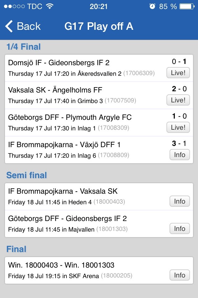 Efter ett riktigt tufft motstånd i semin så tog det tyvärr stopp även för lag 2. Göteborgs DFF stod för en riktigt bra fotboll och blev lite för svåra för våra tjejer. GDFF är en akademi (som jag fått förklarat från en förälder) med Göteborg med omnejd som upptagningsområde med tjejer födda -97 som stomme. Vår stomme med -98 gör alltså en helt fantastisk insats och tar bronspengen i en total av drygt 90 lags konkurrens. Vi är alla enormt stolta över er tjejer som varit smått fantastiska. Tack även framför allt till Degen och Jimmie som gjort ett strålande jobb med tjejerna. Micke Åhlen, Danne Lindström, Ulrica Nogelius m.fl. tack även till er för ett mycket bra jobb. :-) Division 2 Dam 18 jul 2014 0kommentarer