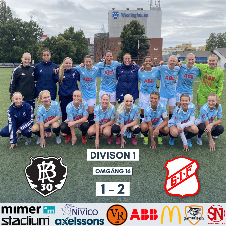 Hur väl man än förbereder sig taktiskt och fysiskt så blir det alltid lite extra viktigt med den mentala delen av sporten när det vankas derby. Även de mest erfarna kan känna av pressen i en match som idag, men vi kan med glädje konstatera att våra spelare pallade trycket. BK30 lyckas efter en frilägesutvisning på sin målvakt ändå ta ledningen på en hörna i slutet av första halvlek, och det är där tränarna lyfter vad som gjorde att man vann matchen. - Vi kände ju att vi redan innan utvisningen var det bättre laget och det var såklart bittert att släppa in ett sådant mål när vi var övertaliga. Men jag är verkligen stolt över tjejerna som bestämt och fokuserat i halvtid verkligen visste att det här skulle vändas bara vi jobbade hårt enligt vår plan och kom till avslutslägen, säger Emelie Airaksinen - Det är lätt att konstatera att vi har ett övertag efter deras utvisning men jobbet ska göras också och det är aldrig lätt att göra två mål hur som helst i en halvlek. Därför var det skönt att se att tjejerna inte hängde med huvudet eller var nervösa utan man tog ansvar och visade att man var där för att vinna matchen, säger Ablis Chamoun Vann matchen gjorde man alltså efter mål av Ulrika Rejdemark och Nicole Odelberg Modin i andra halvlek. Man höll sedan ledningen matchen ut och kände att vinsten var välförtjänt efter att tre viktiga poäng kammades hem. - Hur kul det än må vara att vinna ett derby och all prestige det innebär måste vi komma ihåg att det viktigaste är dem tre poängen som vi tar och som verkligen ger oss häng på lagen över oss. Nu gäller det att vi fortsätter tro på oss själva och fortsätter spela in poängen som krävs för att säkra kontraktet, säger Mathias Hansson. Nästa helg är det spelledigt då Rimbo som skulle stå för motståndet dragit sig ur serien. Våra damer har alltså lång tid att njuta av dagens seger, återhämta sig från skavanker och ladda för kommande matcher! Slutligen tackar vi BK30 och domarteamet för dagens match och framför allt tackar vi alla som stöttade oss på plats och våra sponsorer för sitt stora och betydelsefulla stöd!