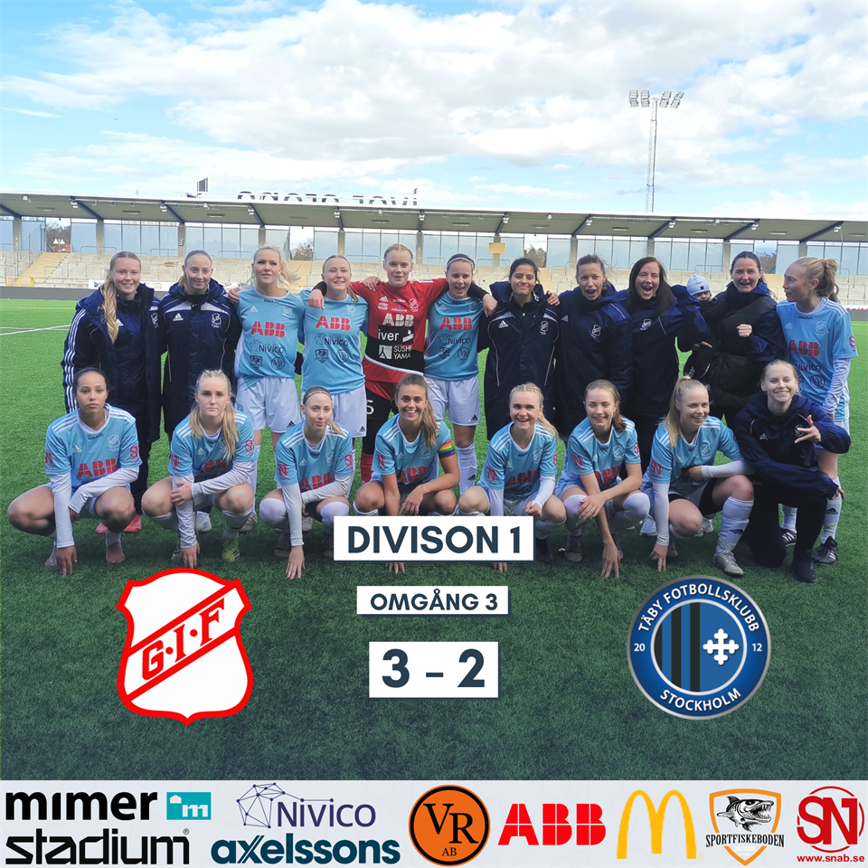 Idag tog våra damer emot fjolårstrean Täby FK hemma på iver arena, och i den tredje omgången av division 1 tog vi vår första trepoängare. Genom två mål av Moa Johansson och ett av Nikita Stigsson så vann man med 3-2. - Vi känner väl att vi är det bättre laget matchen igenom men bjuder tyvärr in dem lite onödigt i matchen vid deras mål. Överlag är det skönt med vår första vinst för säsongen och fortsätter vi jobba hårt för varandra och spela efter våra styrkor kommer det komma fler, säger Andreas Roos. - Tjejerna gör sig förtjänta av tre poäng idag och nu gäller det att vara fokuserade och gå in med rätt inställning redan nästa helg mot Kvarnsveden. Vi vet vad den här truppen har för kapacitet redan nu och vi har utrymme för fortsatt utveckling, säger Ablis Chamoun. Nästa lördag rullar alltså bussen mot Dalarna då vi gästar Kvarnsvedens IK. Idag skall vi dock avsluta med att tacka Täby och domarteamet för matchen, och som alltid tackar vi våra sponsorer och publiken för ert stora och betydelsefulla stöd!