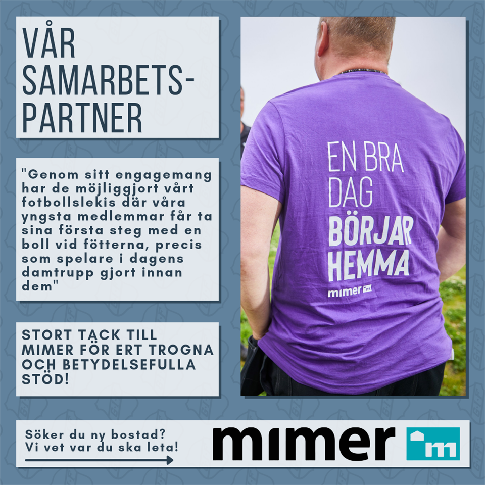 I Gideonsbergs IF ser vi ungdomars utveckling som ett av våra största uppdrag. Hundratals barn och ungdomar spelar sin fotboll, skapar vänskapsband och utvecklas som spelare och människor i våra färger. Västerås största hyresvärd Mimer har under sina år som föreningssponsor visat att de står bakom sin värdegrund där de bestämt att omtanke, nytänkande och engagemang ska genomsyra verksamheten. Genom sitt engagemang har de möjliggjort vårt fotbollslekis där våra yngsta medlemmar får ta sina första steg med en boll vid fötterna, precis som spelare i dagens damtrupp gjort innan dem. Vi riktar ett stort tack till vår samarbetspartner för ert trogna och mycket betydelsefulla stöd!