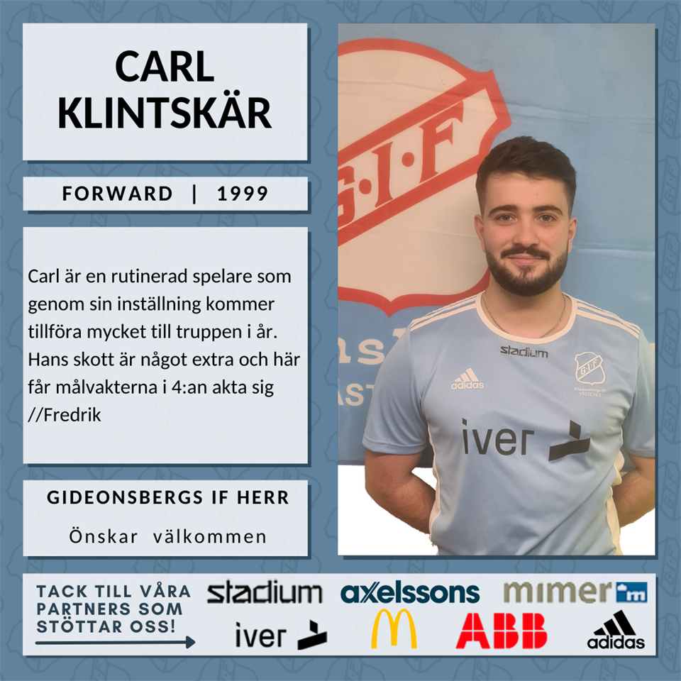 Jag heter Carl Klintskär och är 22 år gammal och spelat fotboll sen jag var i 5 års åldern. Jag är född och uppväxt i Västerås och spelat för Syrianska in princip hela min karriär. Jag har är en offensiv spelare som älskar at utmana mig själv och aldrig backar från en utmaning. På fritiden är jag social och gillar att umgås med vänner. // Carl Vi önskar dig välkommen. A-lag Herr 4 mar 2022 0kommentarer