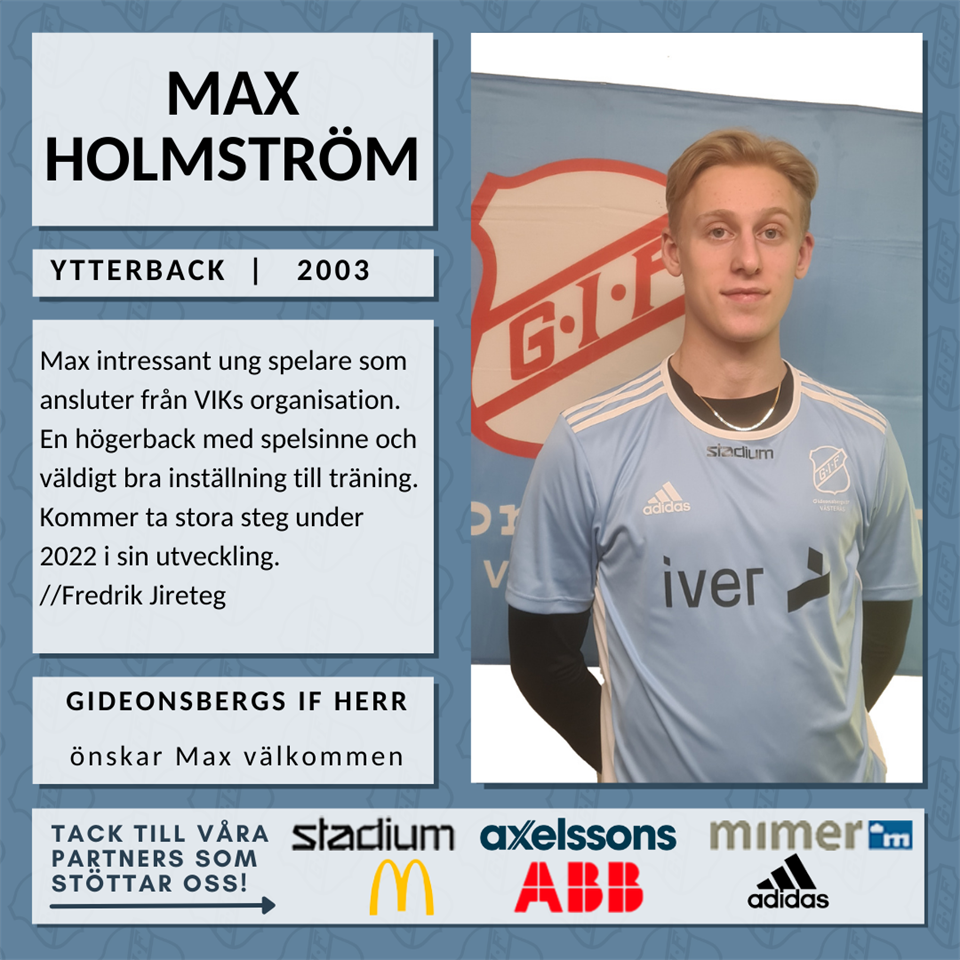 Jag är född sent 2003 så jag har precis fyllt 18 år, och pluggar nu sista året på Widénska gymnasiet. Jag har spelat i vik hela min karriär förutom under ett år då jag spelade i Skiljebo. Jag skulle beskriva mig själv som en hårt jobbande ytterback med en bra passningsfot. //Max Vi önskar dig välkommen. A-lag Herr 21 feb 2022 0kommentarer